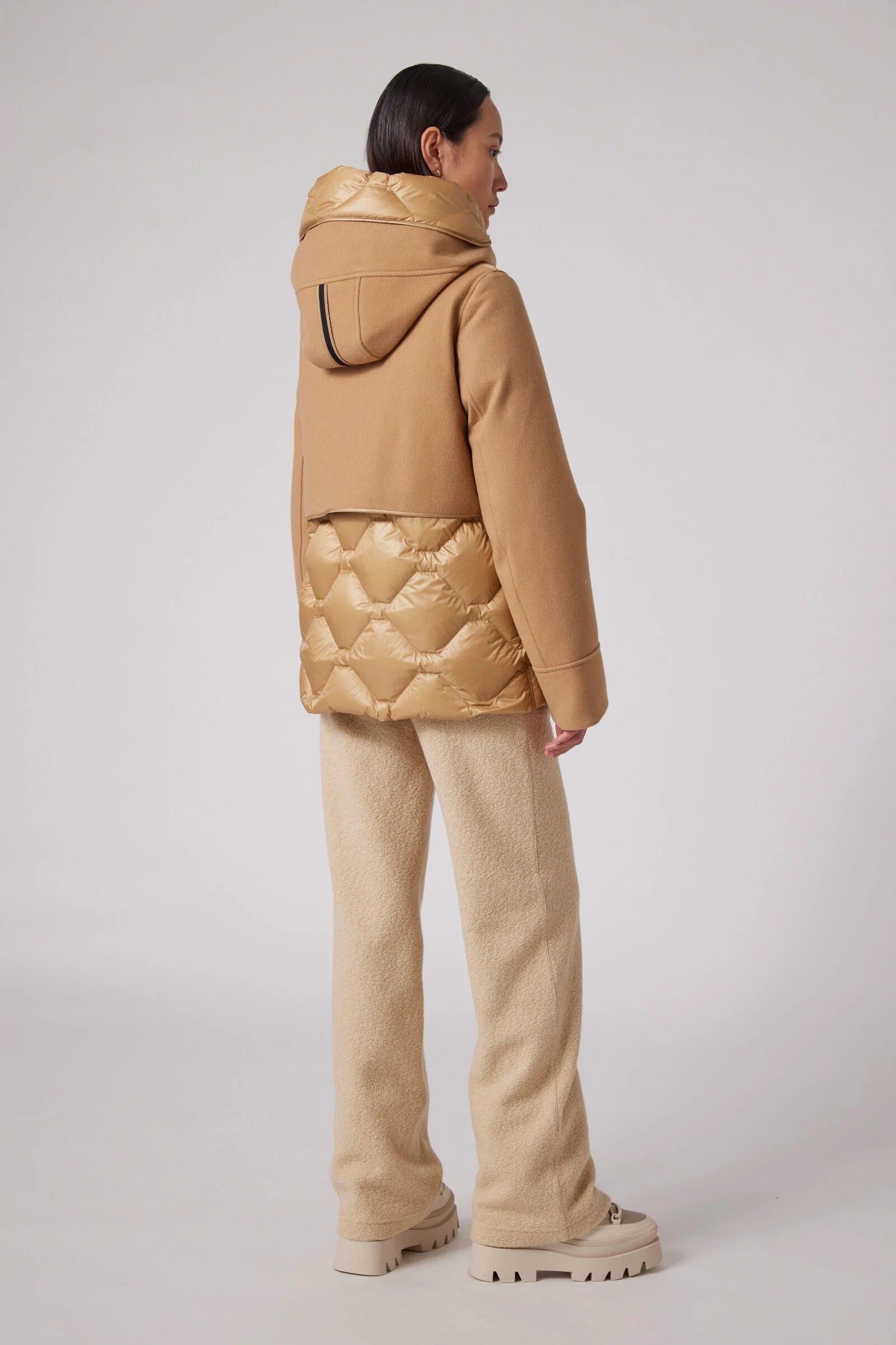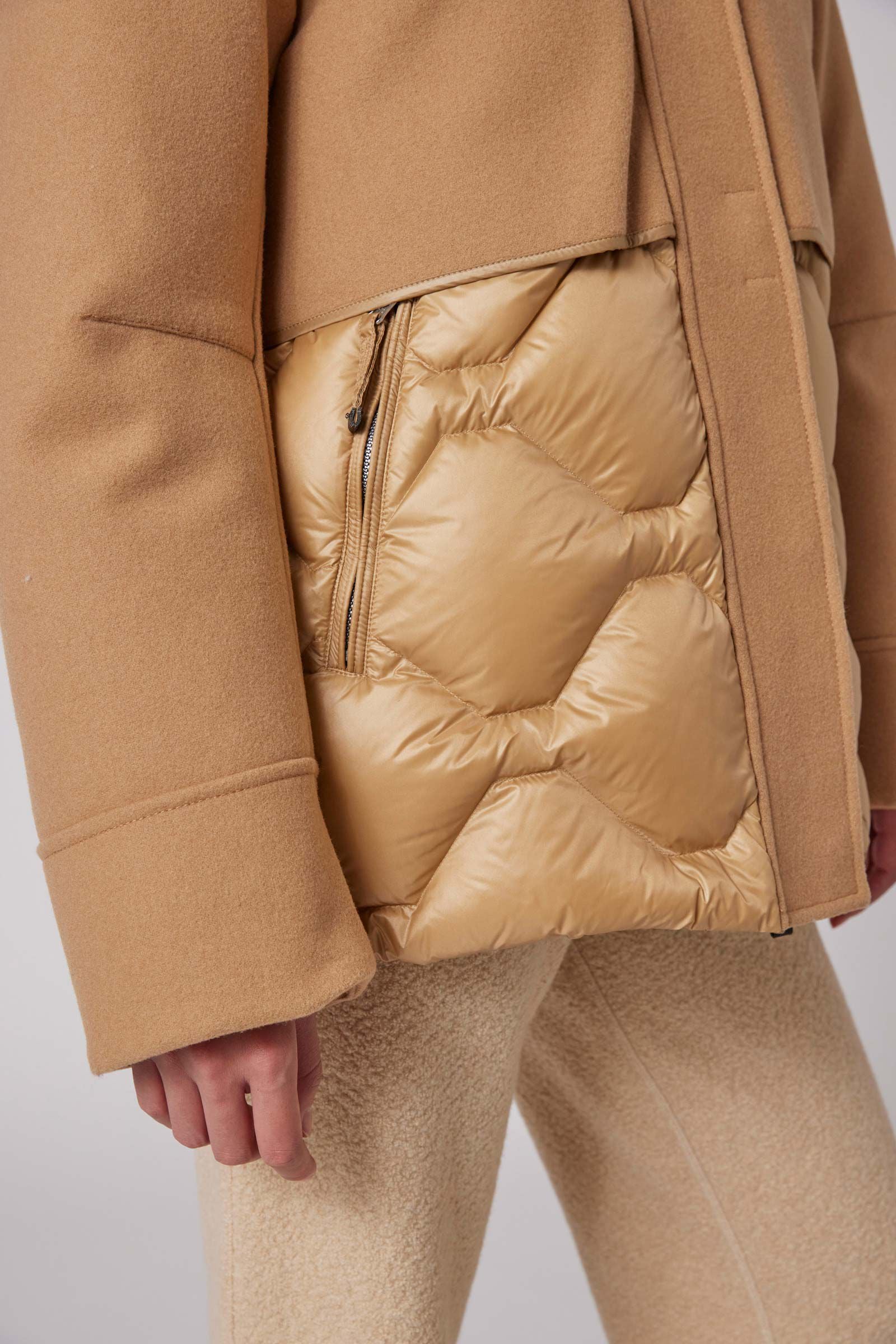 Nadine is a down-filled coat, from the Coated family. It is made of a soft three-layer wool blend fabric combined with shiny 20-denier nylon taffeta. This combination of materials gives the garment refined elegance.Code: 24WMPWJKCT31P830508 -